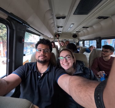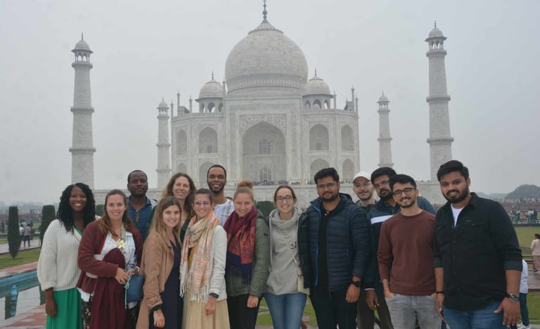 Our group started from Jaipur early in the morning. There were sixteen of us in total, twelve international friends and four Indians. We had rented a tempo traveller and began the five-hour drive in heavy rain. Honestly, I was nervous. I kept looking at the weather, wondering if this was going to be one of those trips where everything goes wrong. For many in our group, this was their one chance to see the Taj. I didn’t want them to leave disappointed. And then, just as we reached Agra, the rain stopped. The air felt cooler. The smog that usually hangs over the city seemed to settle. And there it was, the Taj Mahal, perfectly visible. It almost felt planned.