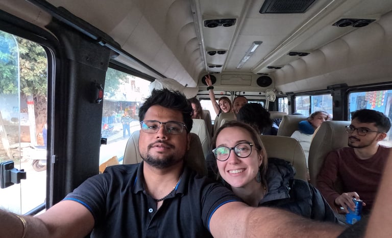 We traveled from Jaipur in a tempo traveler, but you can also come from Delhi or Varanasi by train or car. From Delhi, it takes about 3–4 hours by road or 2 hours via the Gatimaan Express train. Agra is well connected, but traffic and weather can always add some uncertainty.
